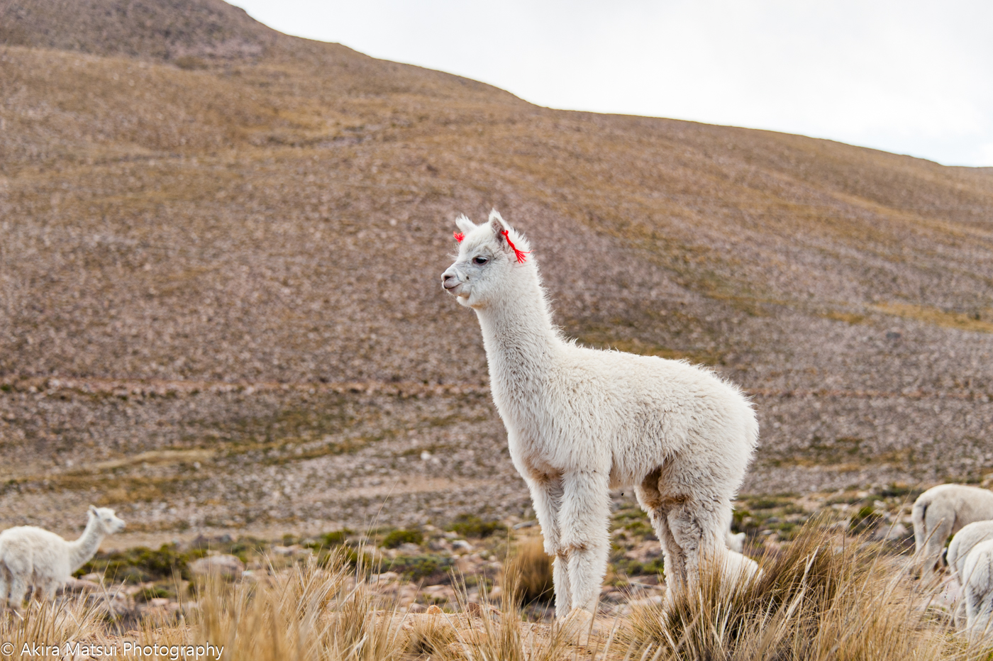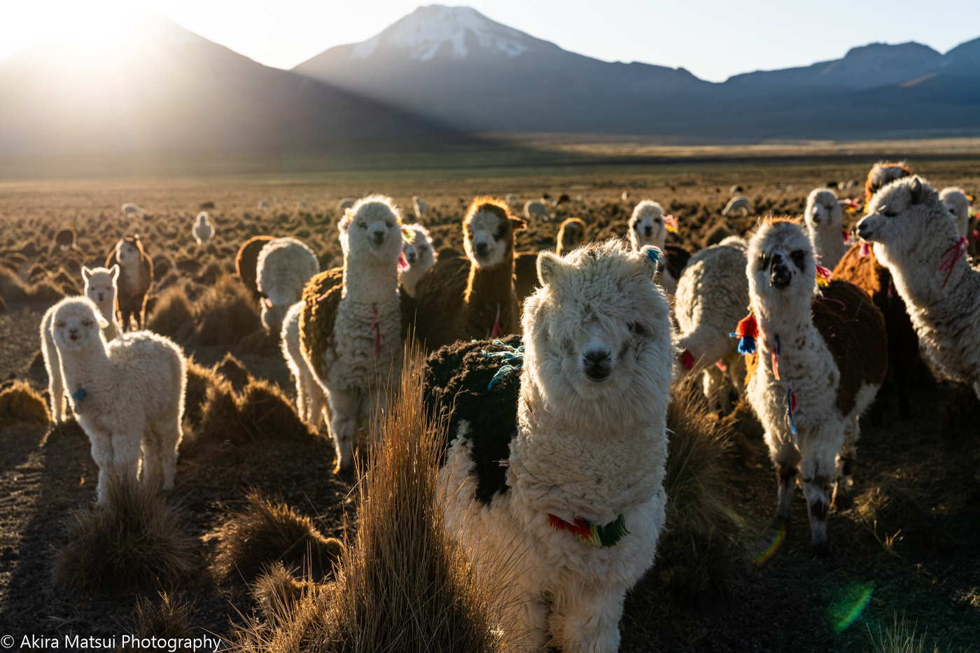 氷河を抱く高峰群を背後に群れを成して歩くアルパカの姿からは、厳しい自然の中を生き抜く逞しさが伝わってくるでしょう。また、シリアスで哀愁の漂う表情を見せたかと思えば、ふと人間のような愛くるしさや可笑しさを感じさせる瞬間もあります。