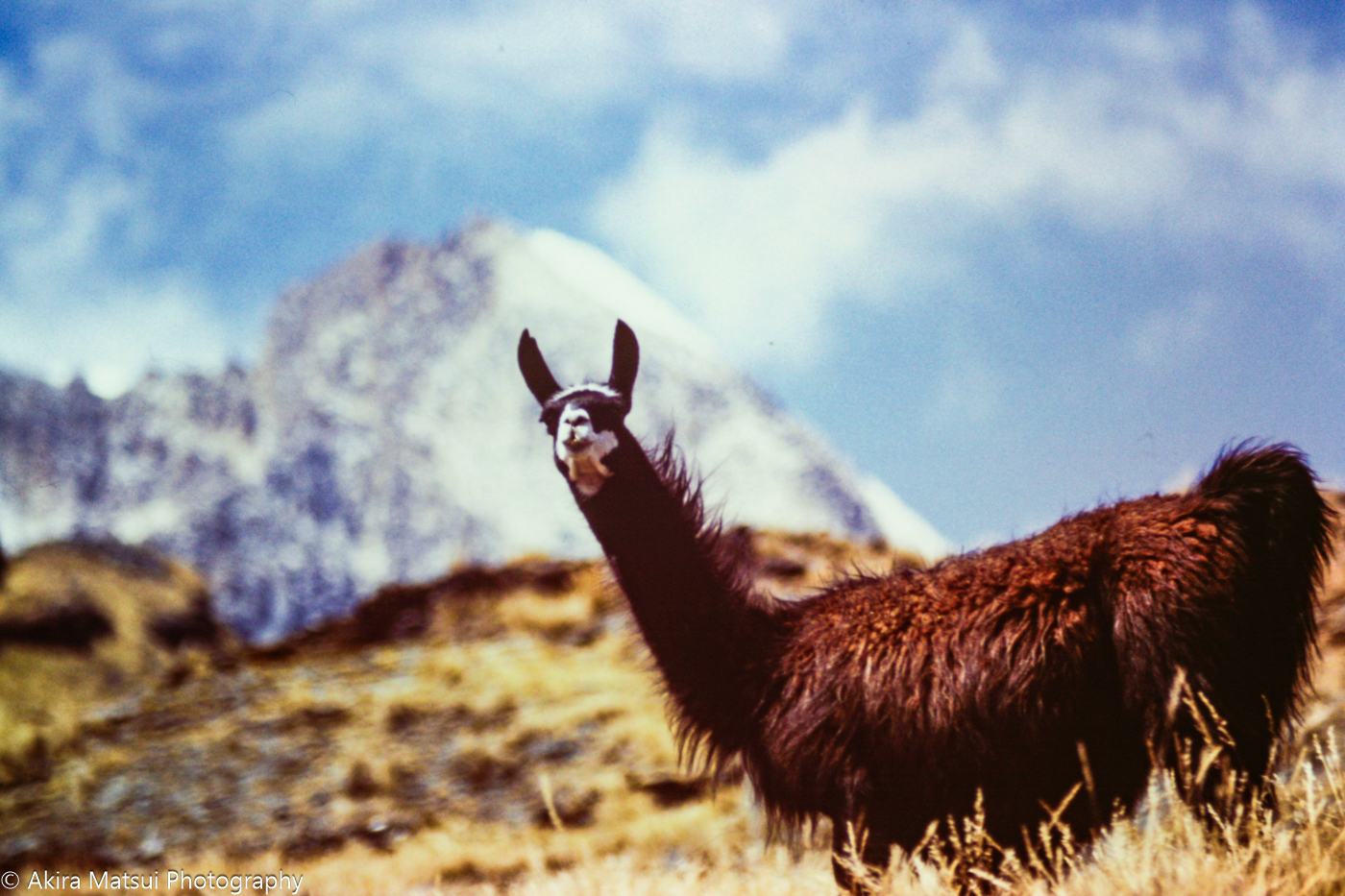 ▲30年前のレアル山群にて。リャマとイヤンプー峰