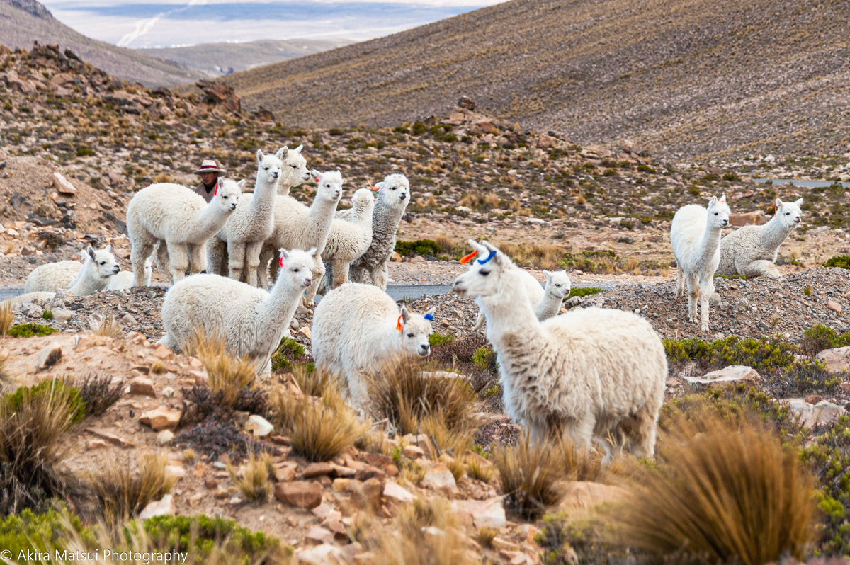 ペルーのアルパカは、白毛が主流