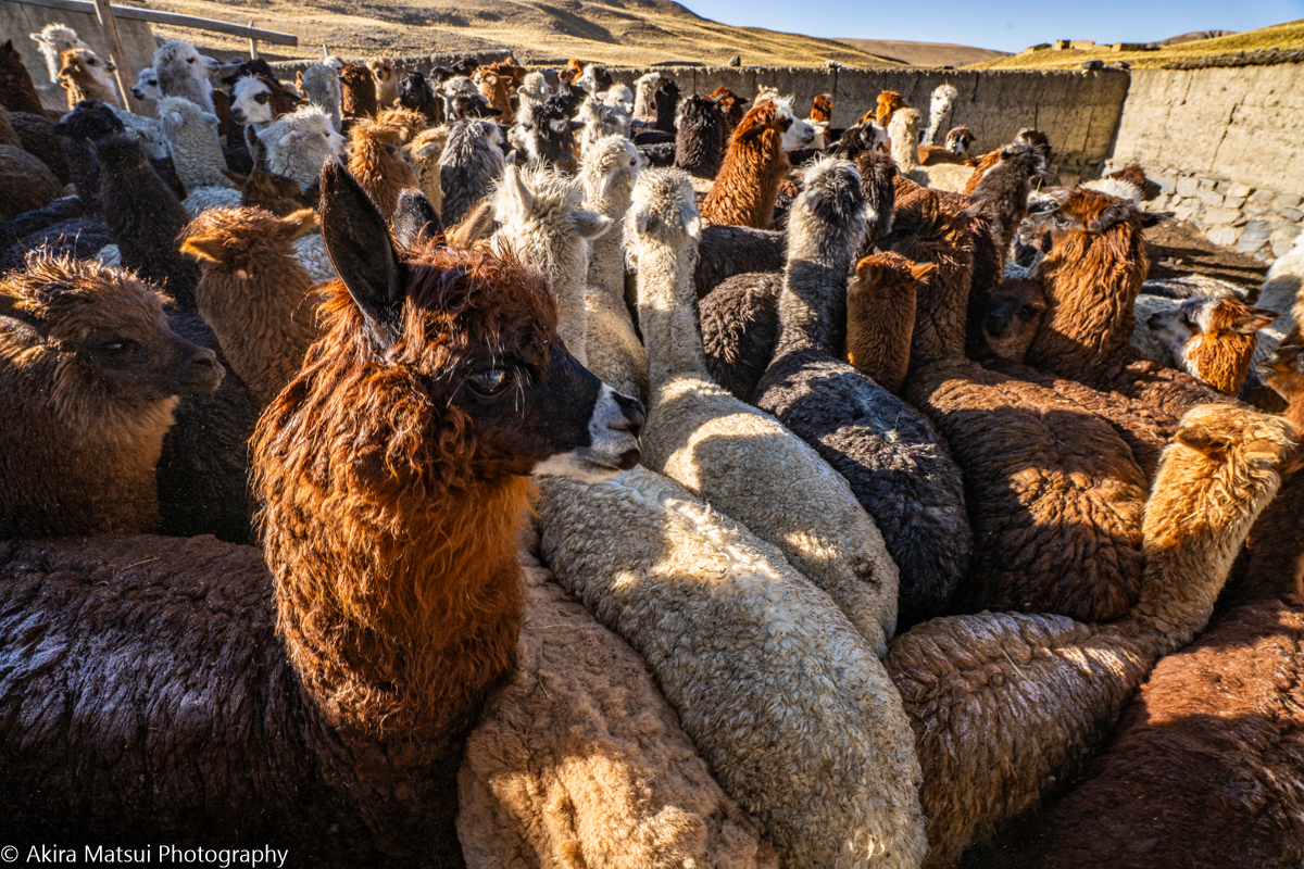 それに対して、アンデス山脈の内陸国であるボリビアでは、港を持たないこともあり、アルパカの毛は長く輸出中心ではありませんでした。そのこともあって、ボリビアでは現在でも多様な毛色のアルパカを見ることができます。
