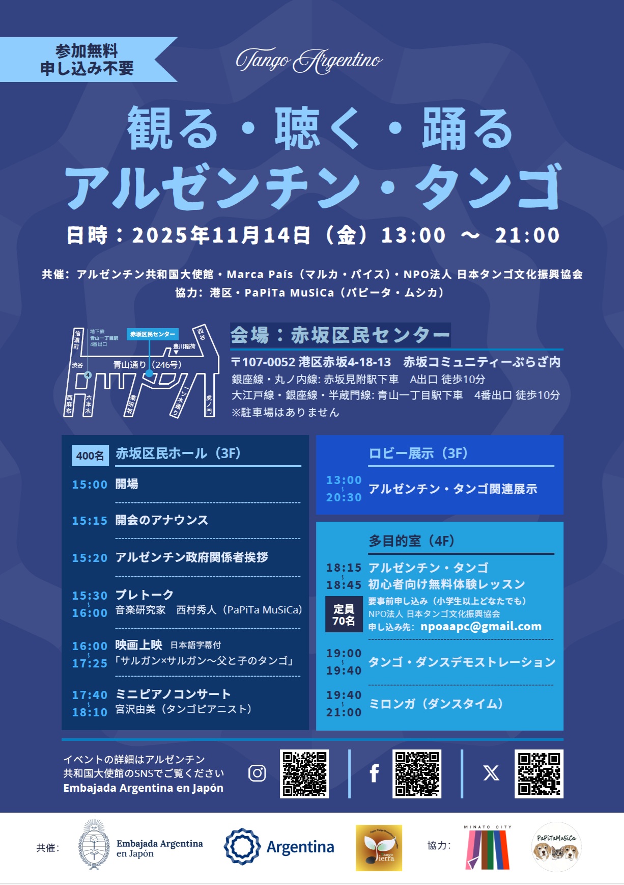 ・共催:アルゼンチン共和国大使館・Marca País(マルカ・パイス)・NPO法人 日本タンゴ文化振興協会