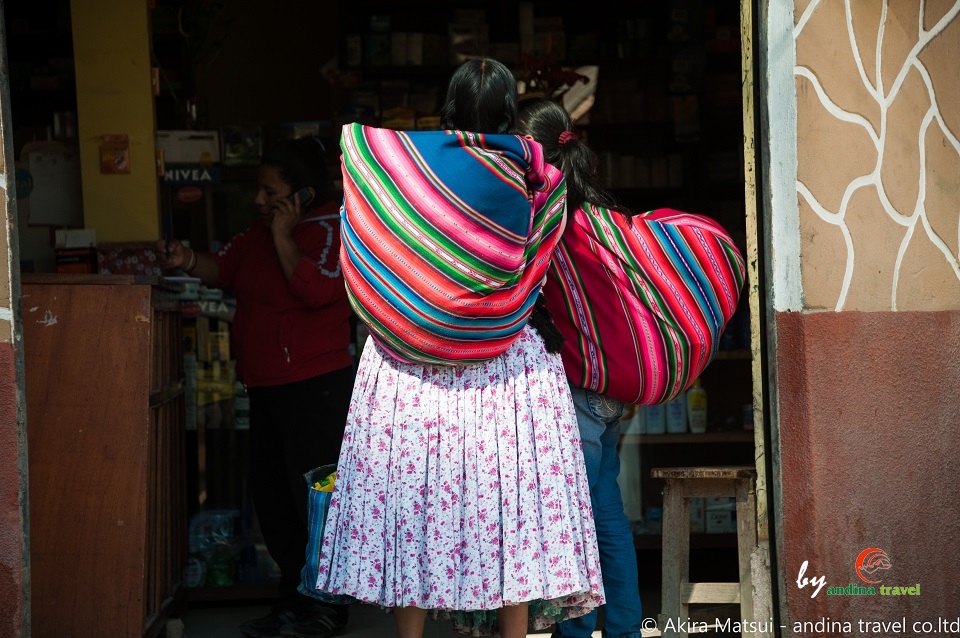 ボリビアはペルーに比べて、さらに民族色の強い国で、女性は鮮やかな民族衣装をまといます。