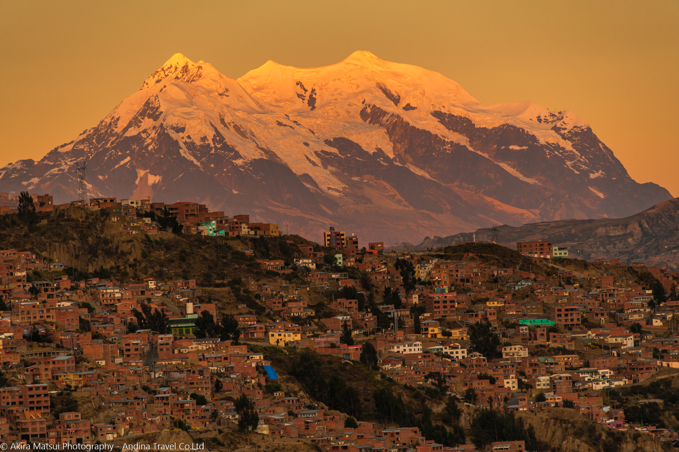 ラパスの展望台から、町のシンボルともいえる聖峰イリマニ(6438m)を、ゴールデアワーと呼ばれる夕方から夜にかけて、定点観測で撮影しました。