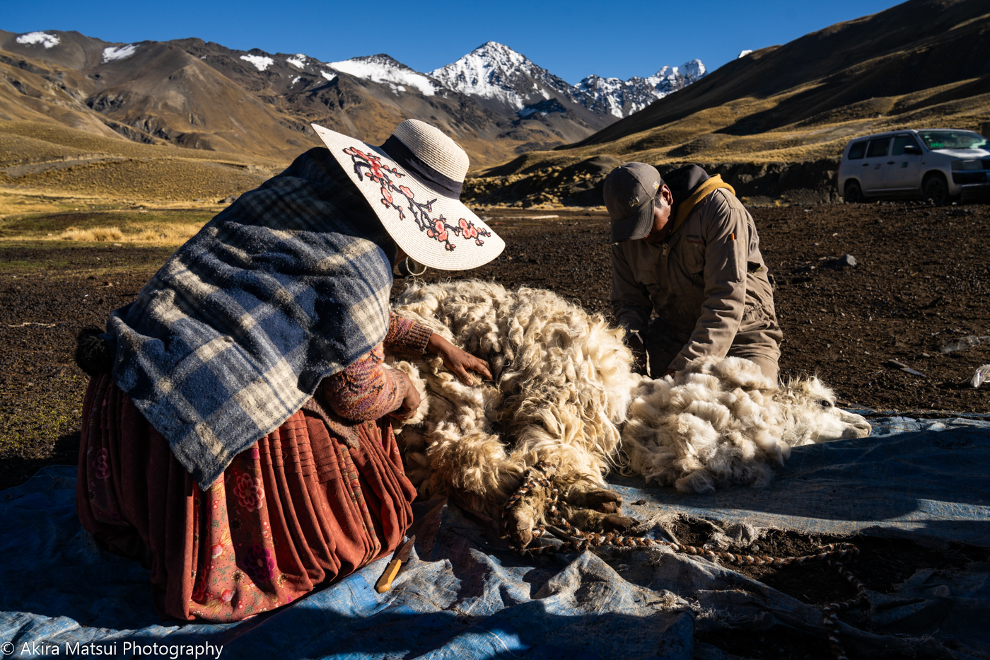 今もなおアイマラ族の人々にとって、アルパカの毛刈りは、「大地とともに生きること」を思い出させる生命の循環の儀式の一つとして、続けられています。