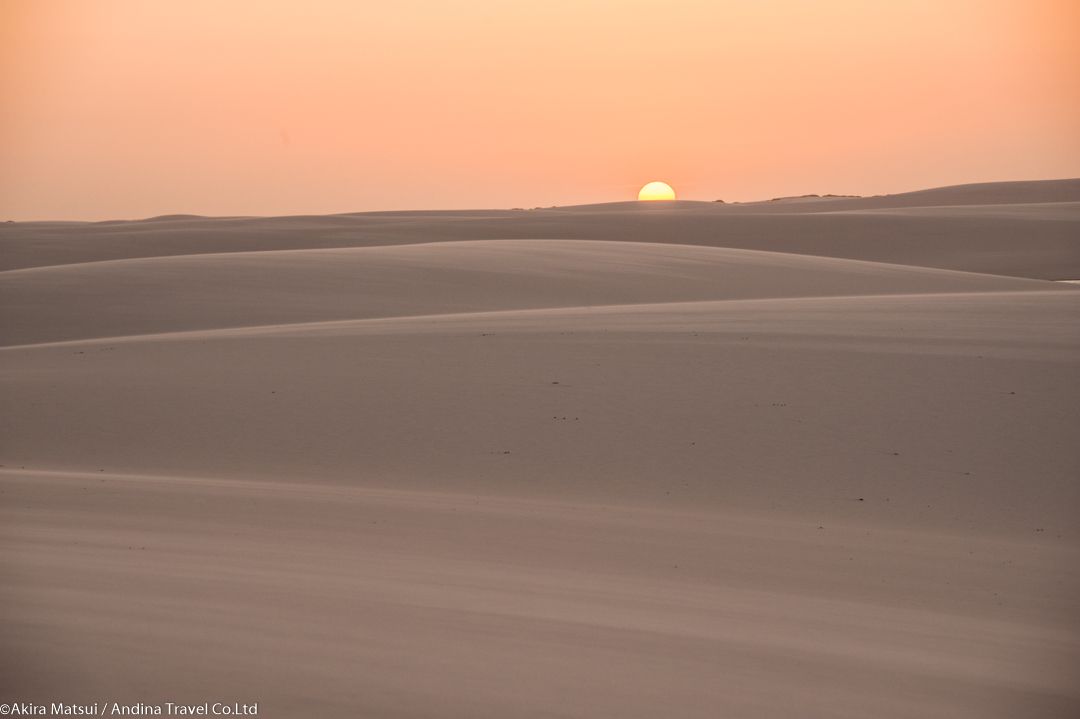 ブラジル・レンソイス砂漠は、1年の中でわずか3カ月(6~8月)だけ約2万個の「幻の湖」に覆われます。水晶の砂は、日中は白く輝き、朝や夕方は橙色に輝きます。カラフルな湖の色も、この水晶の砂による光の反射が影響しているのです。