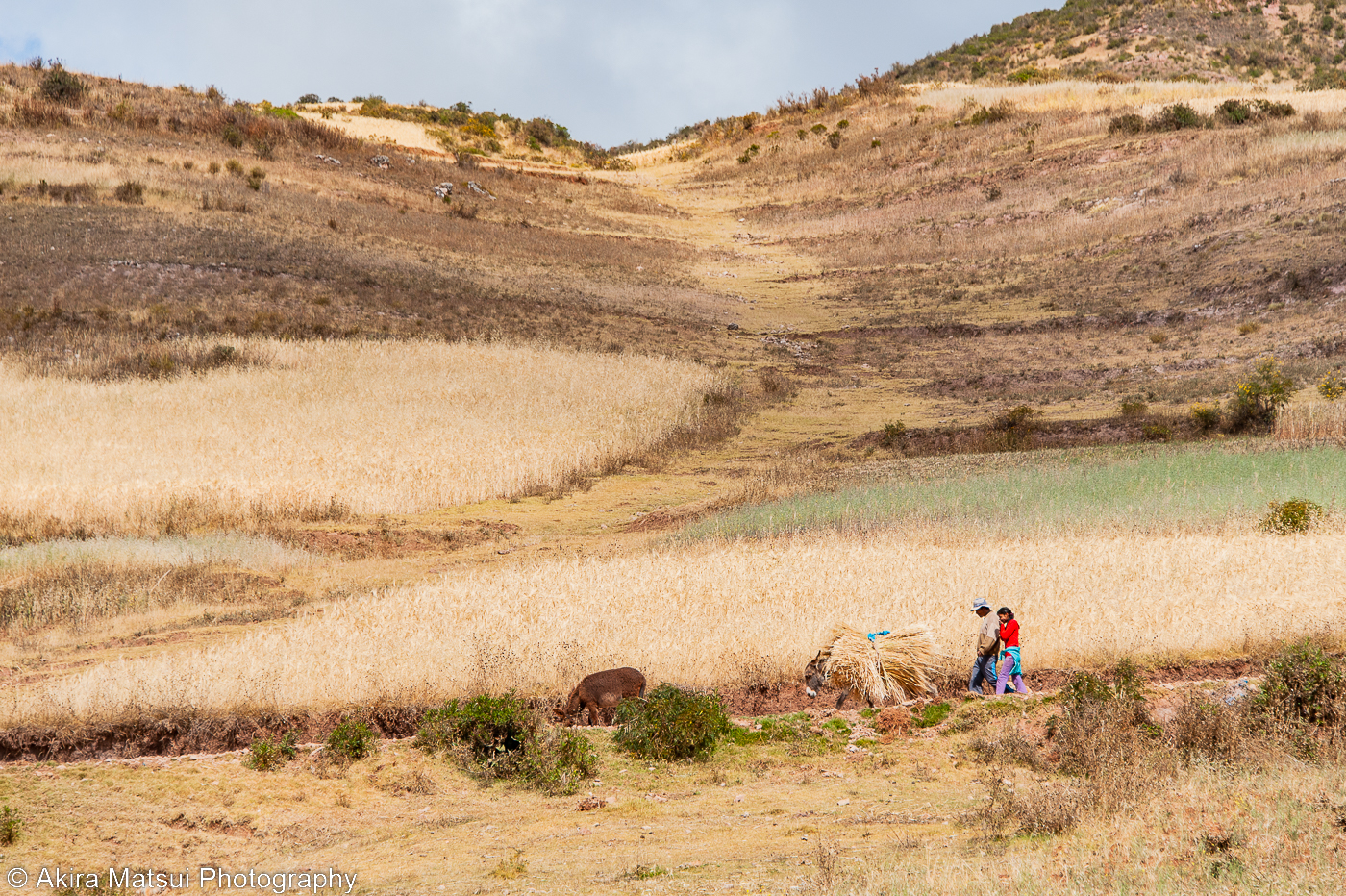 農業に従事する人が多く、高原からウルバンバ谷にかけて、一面が畑に覆われています。ここもまた古代の人々が開拓した土地を人々は守り続けています。
