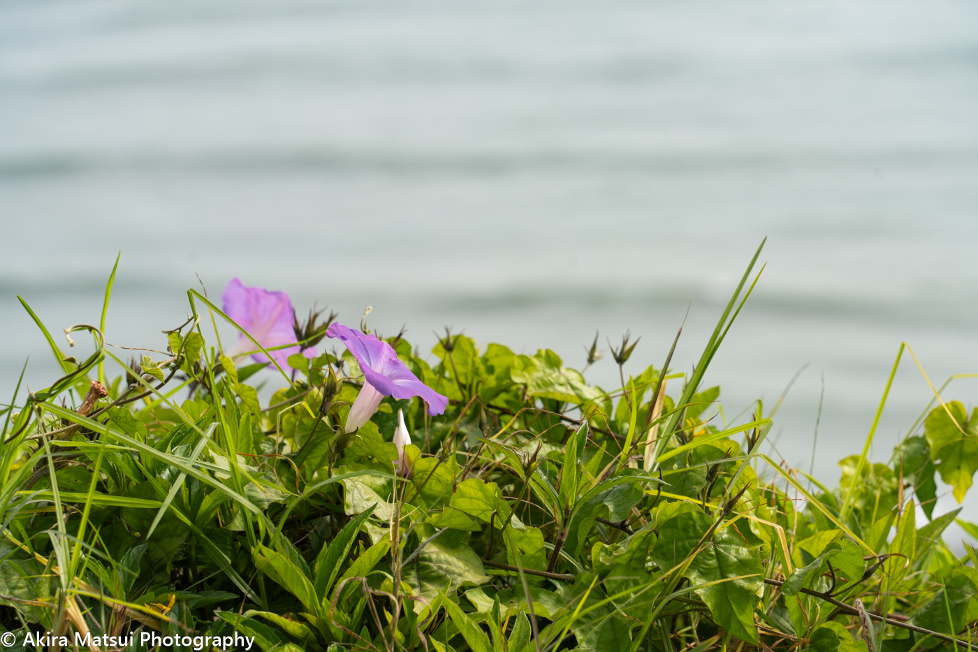 海岸の崖はびっしりと、このアサガオのツルに覆われています。