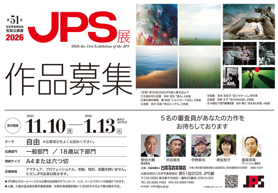 写真を愛するすべての人の表現が集う、日本最大級の写真公募展「JPS展2026」の応募締切(1月13日消印有効)が近づいています。