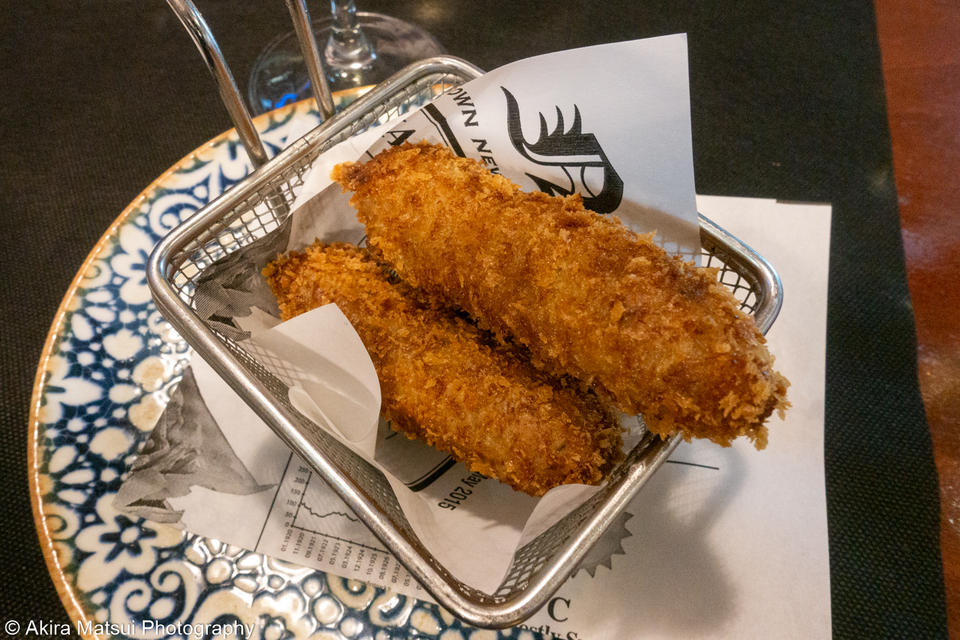 生ハムのコロッケは、生ハムをみじん切りにしてジャガイモに混ぜる。細長く割と小さい